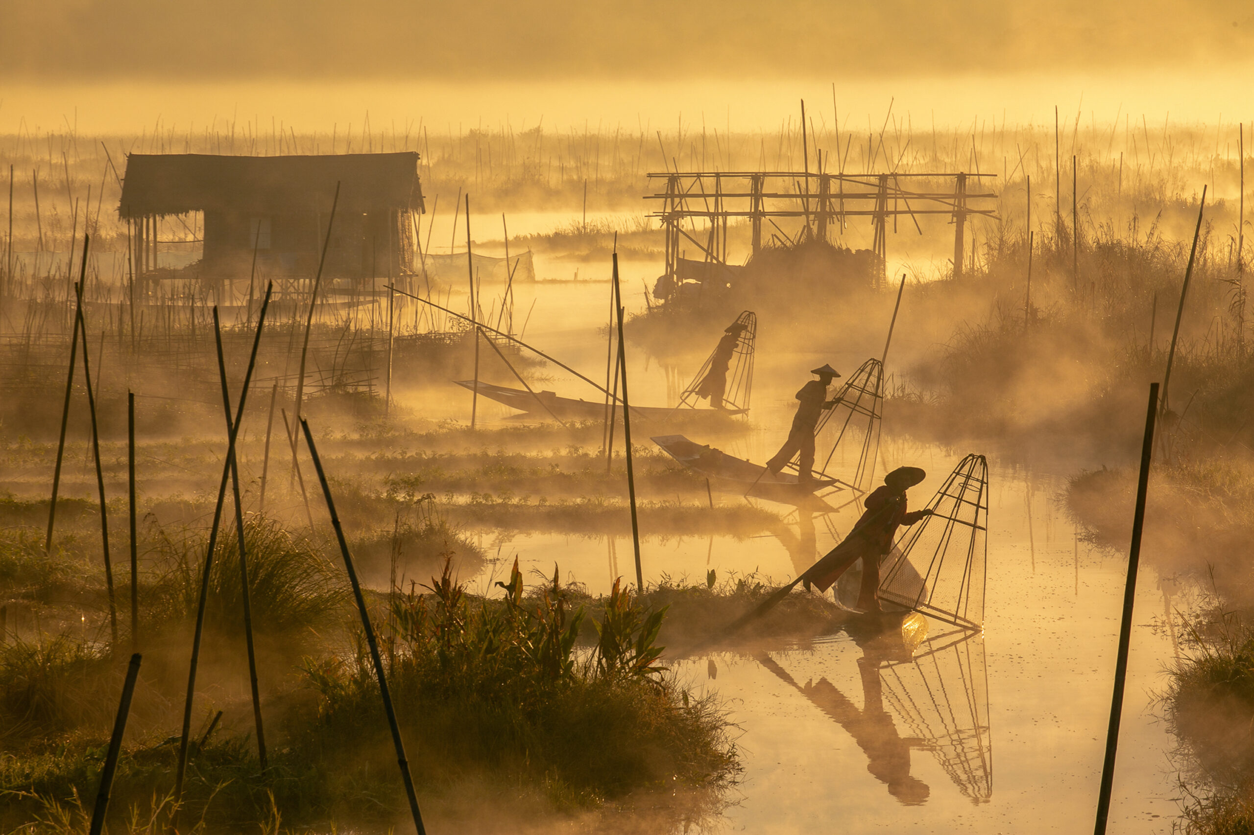 Unique Fauna: Fish species like ngapweh (Chaudhuria caudata) and ngaku-shinpa (Silurus burmanensis; migratory bird species like the sarus crane (Gru santigone), purple swamp hen (Porphyrio porphyrio) and black-winged stilt (Himantopus himantopus); resident birds and other species such as the lesser whistling ducks(Dendrocygna javanica); pheasant-tailed jacana, cattle egret (Bubulcus ibis), purple heron and little comorant (Phalacrocorax niger); greater spotted eagle (Aquila clangga); Indian shimmer (Rynchops alhicolia)