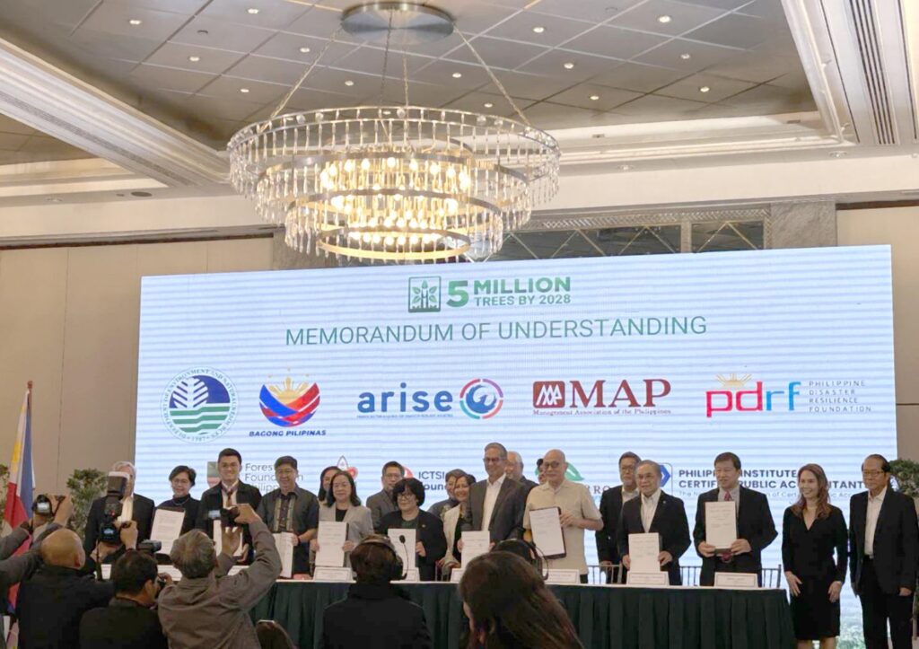 The Philippine Department of Environment and Natural Resources through Secretary Maria Antonia Yulo Loyzaga, inked a memorandum of understanding with eight private sector companies during the launch of the ‘Forest for Life’ program. These are Aboitiz Equity Ventures, DMCI Mining Corporation, First Philippine Holdings, Metro Pacific Investments, Petron, San Miguel Global Power, Prime Infrastructure Capital, and SM Prime Holdings.