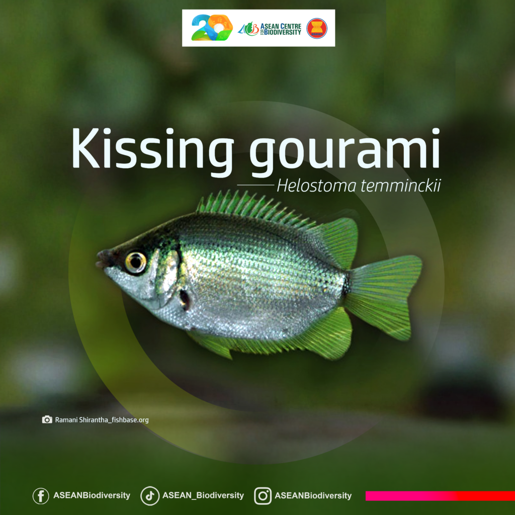 Also known as the Kisser fish, the Kissing gourami is a freshwater fish native to Thailand, Sumatra and Java (Indonesia), and Borneo (Malaysia).